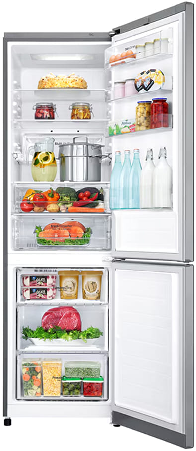 Специальная зона свежести предназначена для правильного и более длительного хранения овощей, фруктов, зелени. В ней поддерживается околонулевая температура, поэтому продукты не перемораживаются и не пересыхают. Система охлаждения этого холодильника — Multi-Airflow-System.