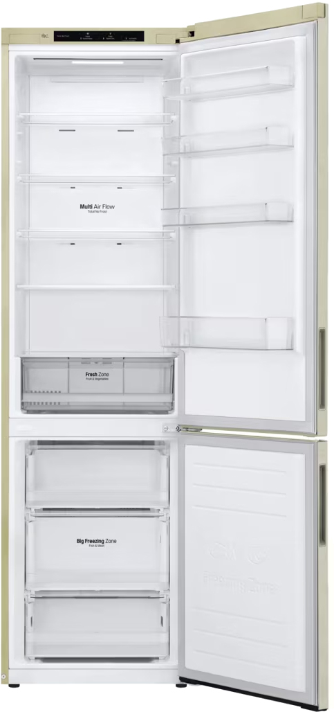 Специальная зона свежести предназначена для правильного и более длительного хранения овощей, фруктов, зелени. В ней поддерживается околонулевая температура, поэтому продукты не перемораживаются и не пересыхают. Система охлаждения этого холодильника — многопоточное охлаждение Multi-flow.