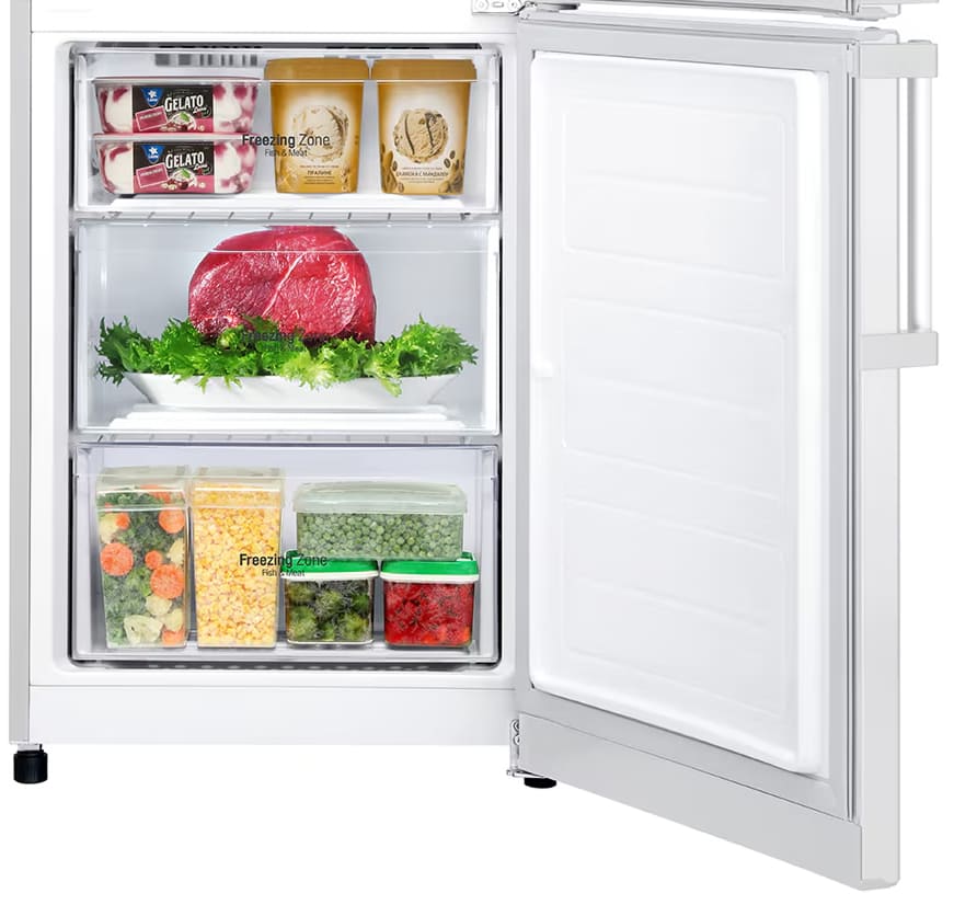 Трехкамерные модели выпускаются в нескольких вариантах. В некоторых случаях в качестве третьей камеры поступает так называемая зона свежести — отделение, где поддерживается температура около 0 градусов. В другом варианте подобные модели имеют морозильную камеру, состоящую из двух выдвижных ящиков.