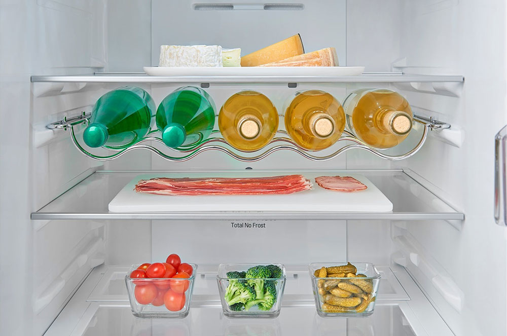 No Frost (Total No Frost, Frost Free): вентилятор обеспечивает циркуляцию охлажденного воздуха, благодаря чему лед не нарастает на стенке, а концентрируется только на скрытом внутри холодильника испарителе. Талая вода собирается в специальной емкости и испаряется. Такой холодильник не нужно размораживать – это экономит время и позволяет не останавливать прибор. Благодаря этим плюсам в современных моделях No Frost – самая распространенная система.