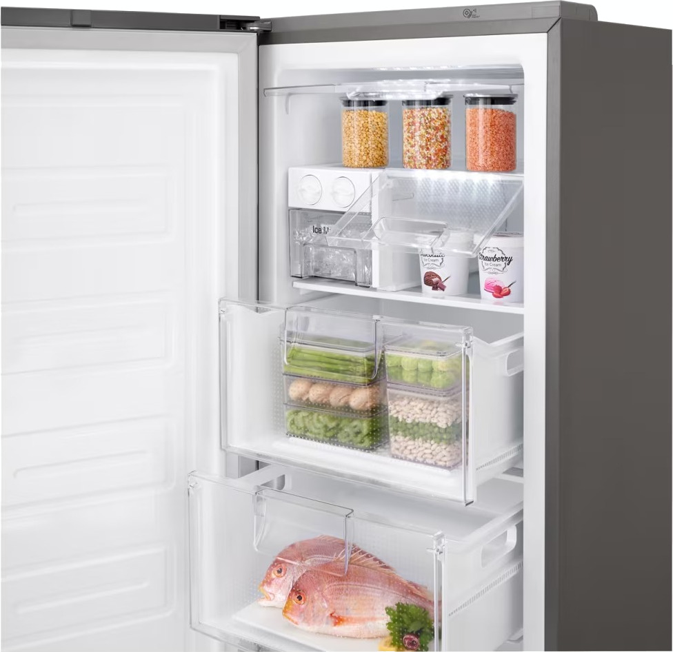 Трехкамерные модели выпускаются в нескольких вариантах. В некоторых случаях в качестве третьей камеры поступает так называемая зона свежести — отделение, где поддерживается температура около 0 градусов. В другом варианте подобные модели имеют морозильную камеру, состоящую из двух выдвижных ящиков.