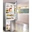 Встраиваемые холодильники монтируются в нишу или колонну. Передняя их часть закрывается декоративным мебельным фасадом и снаружи не отличается от дверцы обычного кухонного шкафа, так что их не нужно подбирать под интерьер помещения. Объем этих холодильников, как правило, несколько меньше, чем у отдельностоящих, так как при встраивании необходимо оставлять свободное пространство для вентиляции. Они отличаются меньшим уровнем шума, а также лучше держат холод и отличаются большей экономичностью из-за дополнительного слоя изоляции. Ассортимент этих холодильников не так велик, как у отдельно стоящих, установка более трудоемкая, а стоимость обычно несколько выше.