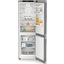 Отдельностоящий двухкамерный холодильник в серебристом исполнении выглядит сдержанно и солидно: фронт из нержавеющей стали с обработкой против отпечатков не собирает следы рук. Габариты 185.5×59.7×67.5 см дают достойный запас пространства при стандартной ширине, а система InteriorFit позволяет поставить прибор в нишу. Двери навешены справа, при необходимости их можно перевесить; доводчик мягко притягивает полотна, а угол открытия 115° облегчает доступ к полкам. Корпус из стали устойчив к повседневной эксплуатации.