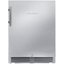 Отдельностоящий мини-бар компактного формата легко находит место в квартире, студии или офисе: высота 81.8 см, ширина 59.8 см и глубина 57.7 см позволяют поставить его в нишу или под рабочую поверхность без сложного монтажа. Корпус и фронт выполнены из нержавеющей стали. Внешняя ручка удобна в хвате, дверной упор справа, при необходимости створку можно перевесить; угол открывания 115° обеспечивает свободный доступ к полкам, а замок на двери предотвращает нежелательное открытие.