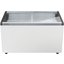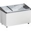Ларь снабжен верхней откидной крышкой, позволяющей поддерживать во внутренней камере низкую температуру. Крышка может быть как глухой, изготовленной из металла, как и весь корпус, так и прозрачной стеклянной. Подобная конструкция требует достаточно много свободного места для установки, однако может быть размещена в подсобном помещении, а не на виду.