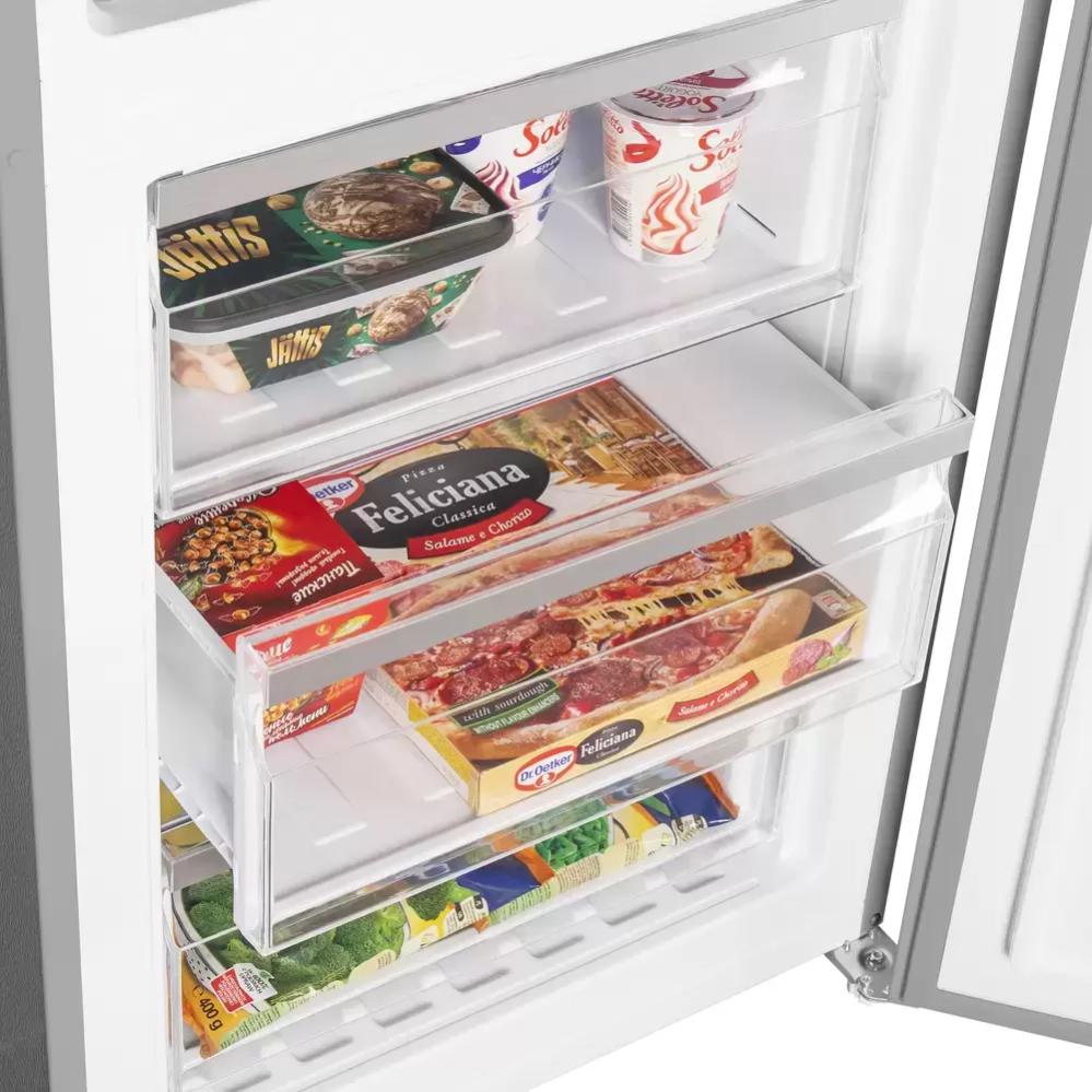 Вместительные контейнеры позволяют хранить достаточное количество овощей и фруктов. Для более длительного хранения и поддержания свежести овощей и фруктов разработаны специальные системы хранения. Среди них, например, зона свежести с увеличенной влажностью до 85% и температурой около 0 градусов. Это герметично закрывающийся ящик, часто на выдвижных роликах или направляющих, в котором имеется специальное задвижка, позволяющая регулировать влажность. Как известно, при более высокой влажности продукты с большим содержанием воды дольше остаются свежими.