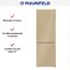 Maunfeld MFF185NFBG — отдельно стоящий двухкамерный холодильник с морозильником снизу из дизайн-коллекции Модерн. Корпус бежевого цвета изготовлен из металла, а фасад его — из прочного и эффектного закаленного стекла. Для охлаждения используется мощный инверторный компрессор с пониженным энергопотреблением класса А+ и уровнем шума всего 42 дБ. Холодильник подойдет для установки в кухне любой площади благодаря стандартной ширине 60 см, высоте 185,5 см и глубине 64 см. Общий объем его составляет 340 литров, из них 94 литра приходится на морозильную камеру с производительностью замораживания до 4,5 кг продуктов в сутки. Холодильник оснащен системой размораживания NoFrost, так что на стенках у него не образуется иней, и очистка их занимает минимум времени. Перенавешиваемая дверца и регулируемые ножки позволяют найти оптимальное место для размещения прибора.
