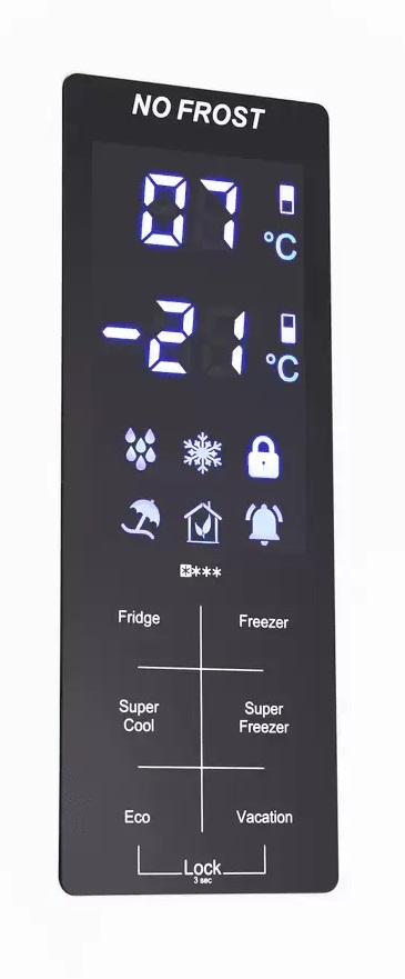 Система управления холодильником позволяет самостоятельно выбирать температуру охлаждения каждой камеры, задавать дополнительные параметры, контролировать работу прибора. П