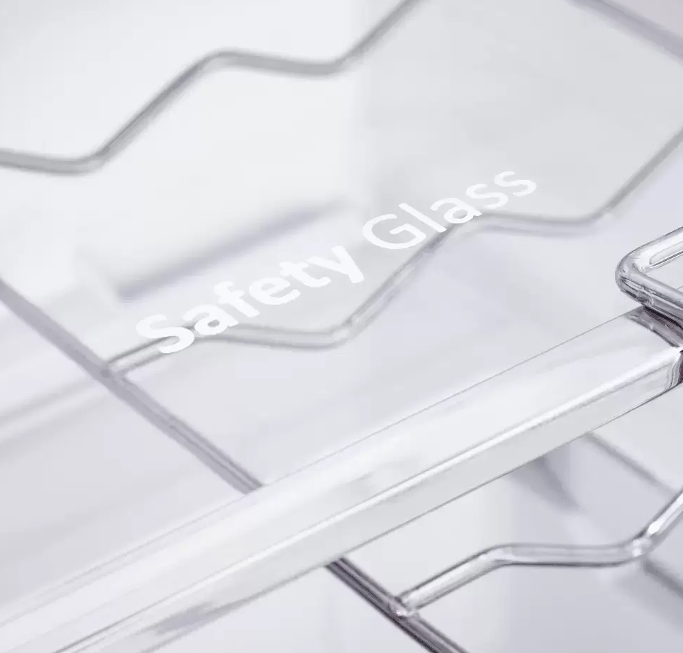 Оптимальным выбором является устройство со стеклянными полками. Закаленное стекло отличается высокой термостойкостью, устойчивостью к химическим и механическим воздействиям. Современные полки из ударопрочного стекла способны выдержать вес до 25 кг, они не пострадают при размещении на них металлической посуды. За ними легко ухаживать, а со временем стекло не желтеет и не портится. Стеклянные полки часто имеют пластиковую или металлическую окантовку, защищающую от пролитой жидкости.