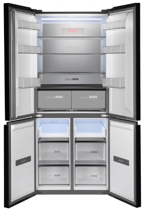 Четырех-, пяти- и шестикамерные модели включают, кроме морозильной и холодильной камер, отдельную зону свежести (иногда состоящую из сухого и влажного отсеков) и специальный отсек для ледогенератора, а в некоторых случаях еще и винное отделение.