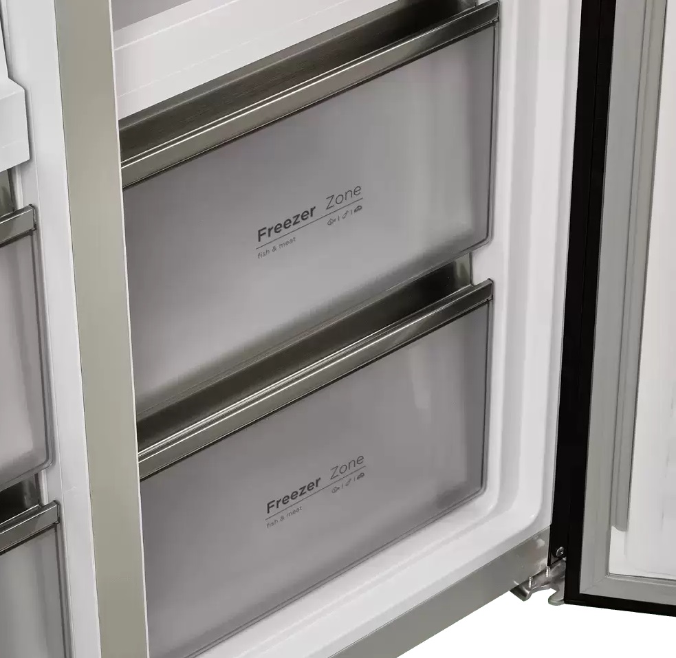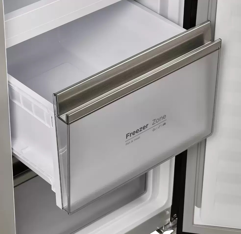 Трехкамерные модели выпускаются в нескольких вариантах. В некоторых случаях в качестве третьей камеры поступает так называемая зона свежести — отделение, где поддерживается температура около 0 градусов. В другом варианте подобные модели имеют морозильную камеру, состоящую из двух выдвижных ящиков.