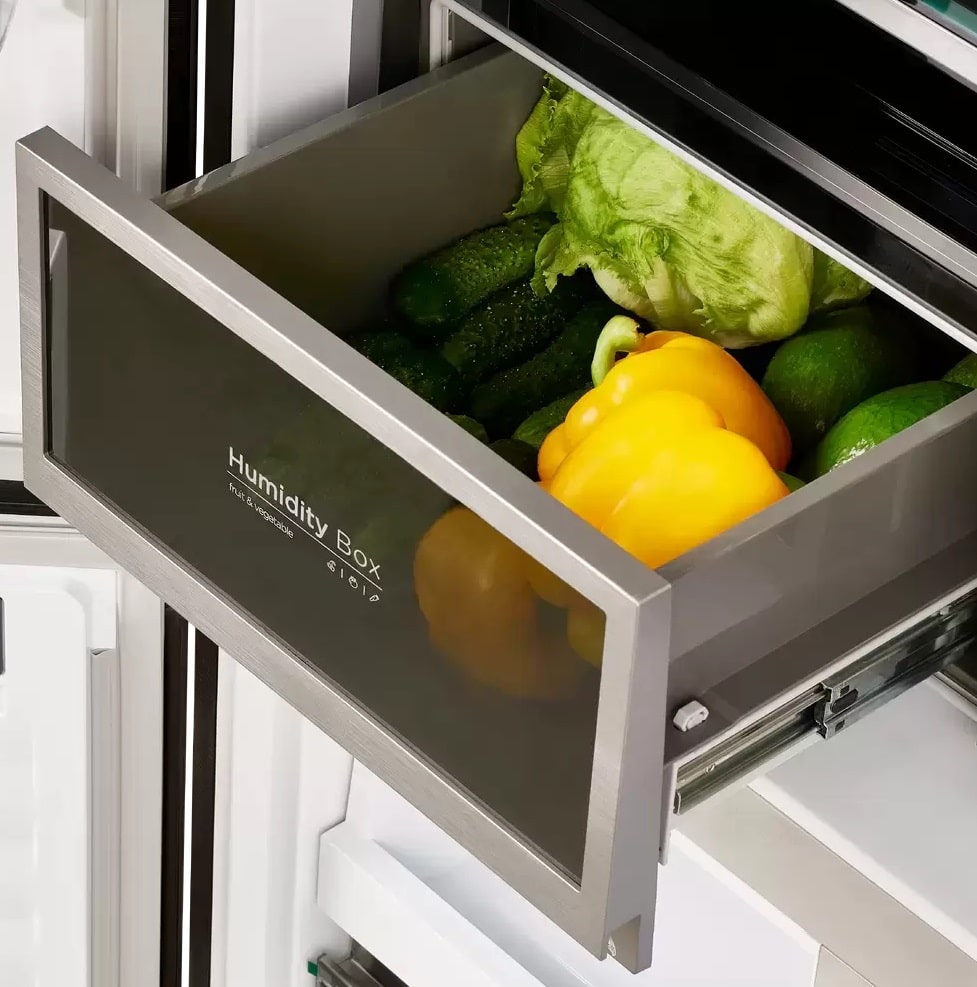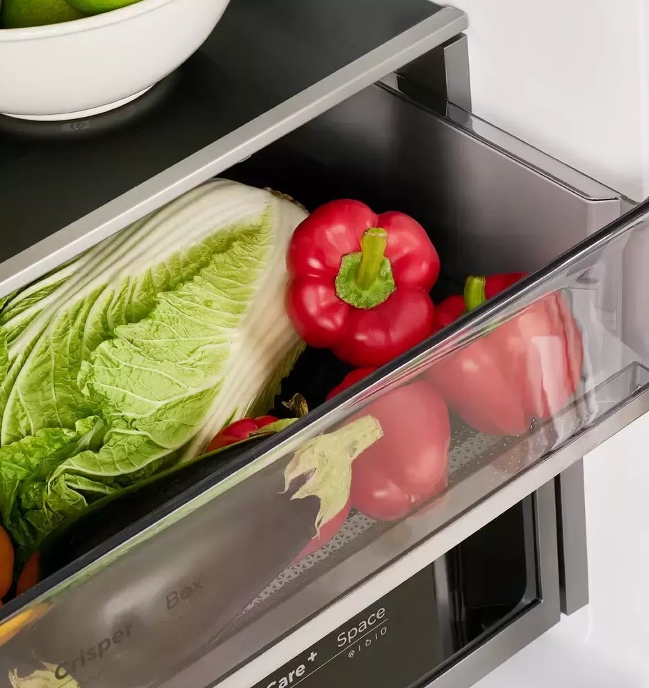 Ящики для овощей и фруктов можно найти в любой холодильной камере, какого размера ни был бы ваш холодильник — от большого устройства Side-by-Side до стандартной двухкамерной модели. В простейшем варианте они представляют собой обычные выдвижные ящики из пластика в нижней части камеры.