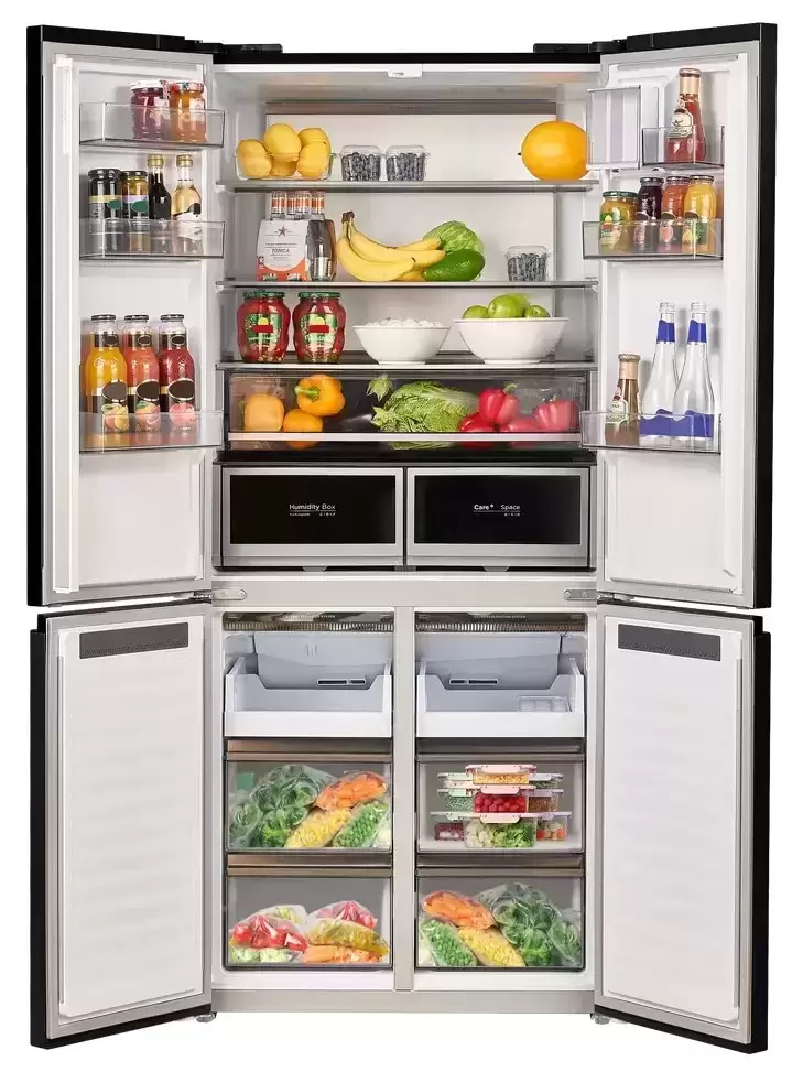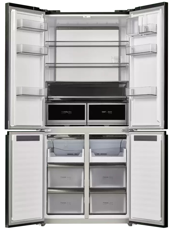 Четырех-, пяти- и шестикамерные модели включают, кроме морозильной и холодильной камер, отдельную зону свежести (иногда состоящую из сухого и влажного отсеков) и специальный отсек для ледогенератора, а в некоторых случаях еще и винное отделение.