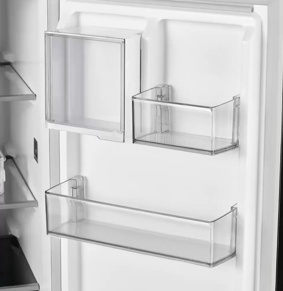 Очень редко в холодильниках можно увидеть откидную дверцу — она имеется, например, в отсеке для вакуумирования в холодильниках Hitachi.