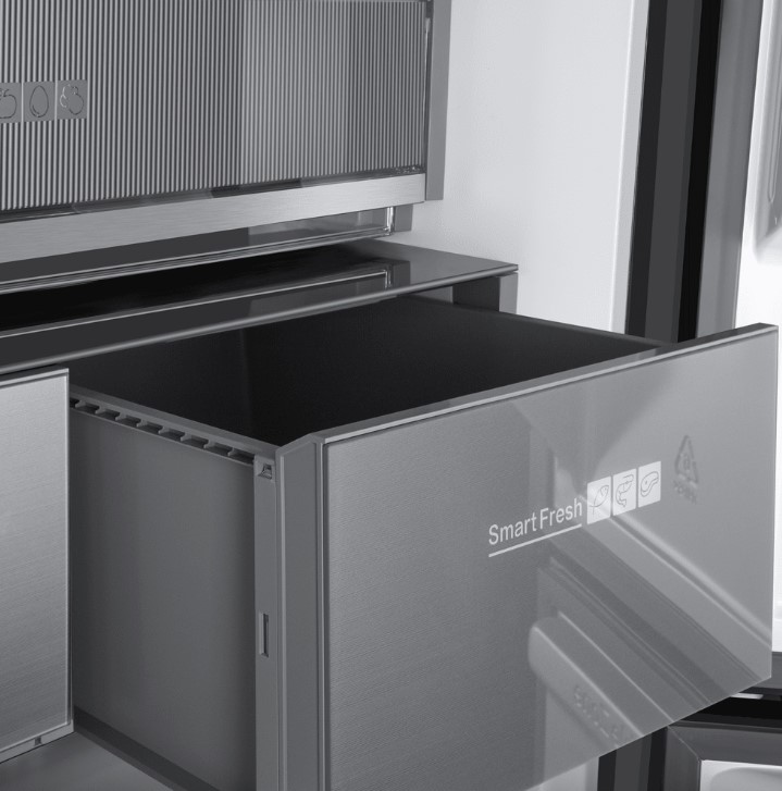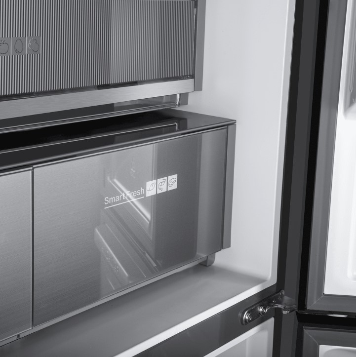Трехкамерные модели выпускаются в нескольких вариантах. В некоторых случаях в качестве третьей камеры поступает так называемая зона свежести — отделение, где поддерживается температура около 0 градусов. В другом варианте подобные модели имеют морозильную камеру, состоящую из двух выдвижных ящиков.