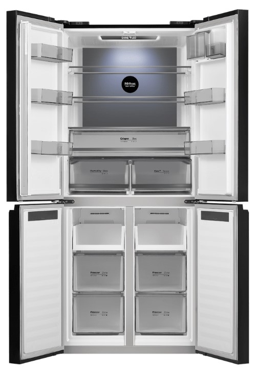 Четырех-, пяти- и шестикамерные модели включают, кроме морозильной и холодильной камер, отдельную зону свежести (иногда состоящую из сухого и влажного отсеков) и специальный отсек для ледогенератора, а в некоторых случаях еще и винное отделение.
