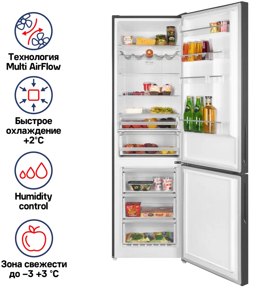 Холодильник Maunfeld MFF200NFSBE — замечательный выбор для всех, кто нуждается в надежном и современном приборе, чтобы обустроить кухню по последнему слову техники.