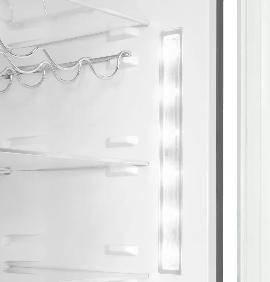 Внутреннее освещение холодильной камеры позволяет обеспечить хороший обзор содержимого и быстро найти необходимые продукты. Чем меньше времени будет открыта дверца холодильника, тем лучше будет поддерживаться в камере выбранная температура, следовательно, улучшится и качество хранения продуктов.