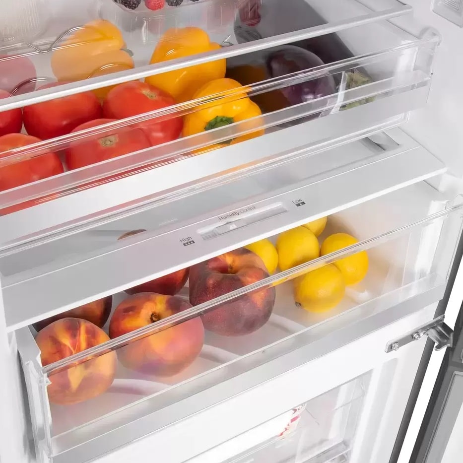 Специальная зона свежести предназначена для правильного и более длительного хранения овощей, фруктов, зелени. В ней поддерживается околонулевая температура, поэтому продукты не перемораживаются и не пересыхают.