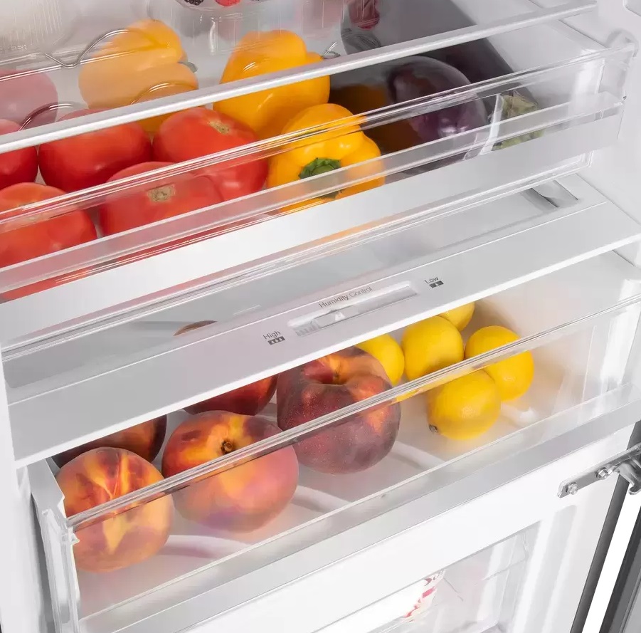 Ящики для овощей и фруктов можно найти в любой холодильной камере, какого размера ни был бы ваш холодильник — от большого устройства Side-by-Side до стандартной двухкамерной модели. В простейшем варианте они представляют собой обычные выдвижные ящики из пластика в нижней части камеры.
