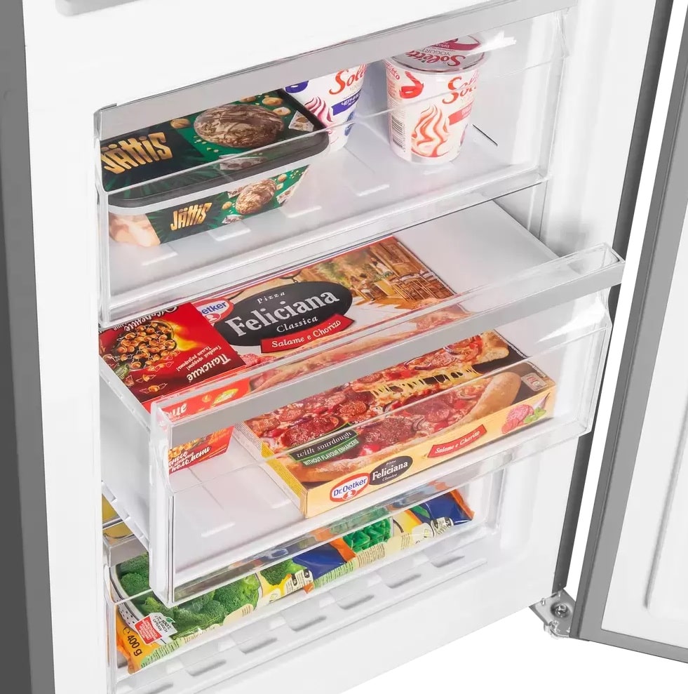 Специальная зона свежести предназначена для правильного и более длительного хранения овощей, фруктов, зелени. В ней поддерживается околонулевая температура, поэтому продукты не перемораживаются и не пересыхают.