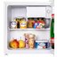 Maunfeld MFF50W — отдельно стоящий мини-холодильник с одной дверцей высотой всего 50 см и шириной 47 см. Корпус его изготовлен из металла, на внутреннюю поверхность камеры нанесено специальное антибактериальное покрытие для защиты от плесени и неприятных запахов. Благодаря скромным габаритам и весу всего 14 кг эту модель можно легко перевезти с места на место, установить под столешницей или на ней. Холодильник подойдет для использования на даче, в гостинице в качестве мини-бара, в маленькой студии. Общий объем его составляет 46 литров. В верхней части камеры имеется зона дополнительного охлаждения, способная ненадолго заменить морозильник.