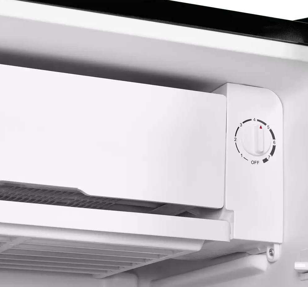 Основным элементом управления в холодильниках с механической или электромеханической системой служит поворотной переключатель с делениями. Поворотом ручки можно регулировать степень охлаждения на нескольких уровнях — от минимального до максимального. Точное значение температуры в таких устройствах установить невозможно. Кроме того, во всех холодильниках присутствует система индикации, которая действует при повышении температуры в камере выше заданного значения, а также лампочка, которая загорается при неплотно закрытой дверце.