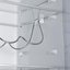 Внутреннее наполнение составляют семь полок из прочного закаленного стекла, в том числе шесть регулируемых по высоте, полки на дверце для небольших упаковок, металлическая полка для бутылок и два контейнера для овощей и фруктов в нижней части. Класс энергоэффективности А+ гарантирует экономичное потребление электроэнергии — 147 кВт в год. Уровень шума при работе компрессора составляет всего 39 дБ.