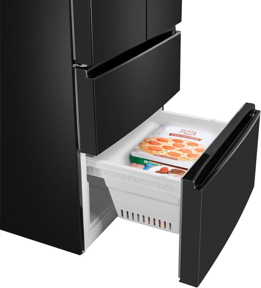 Трехкамерные модели выпускаются в нескольких вариантах. В некоторых случаях в качестве третьей камеры поступает так называемая зона свежести — отделение, где поддерживается температура около 0 градусов. В другом варианте подобные модели имеют морозильную камеру, состоящую из двух выдвижных ящиков.