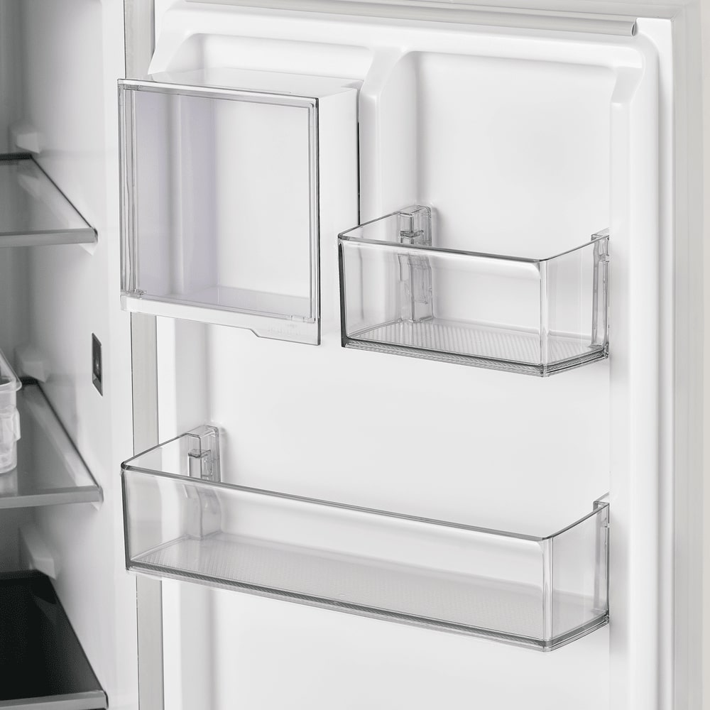 Практические детали облегчают эксплуатацию: светодиодная подсветка даёт отличный обзор, электронная индикация и звуковой сигнал при открытой двери предупреждают о теплопотере, а защита от детей блокирует изменения настроек. В сравнении с традиционными моделями данный прибор выгодно отличается сочетанием большого объёма, тихой работы, практичной организацией зон хранения. Уход будет простым благодаря No Frost. Всё это делает холодильник удачным выбором для тех, кто ценит комфорт и энергоэффективность.