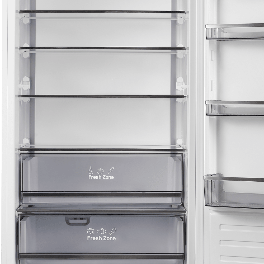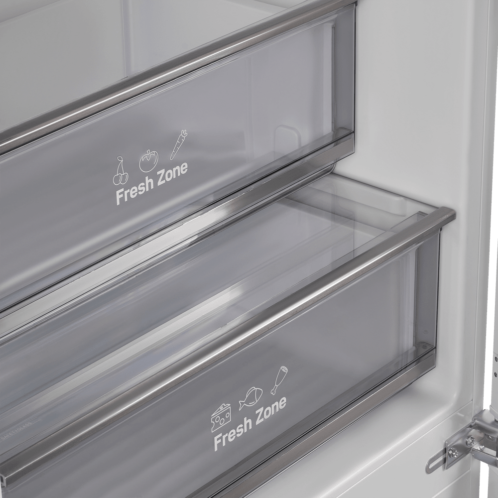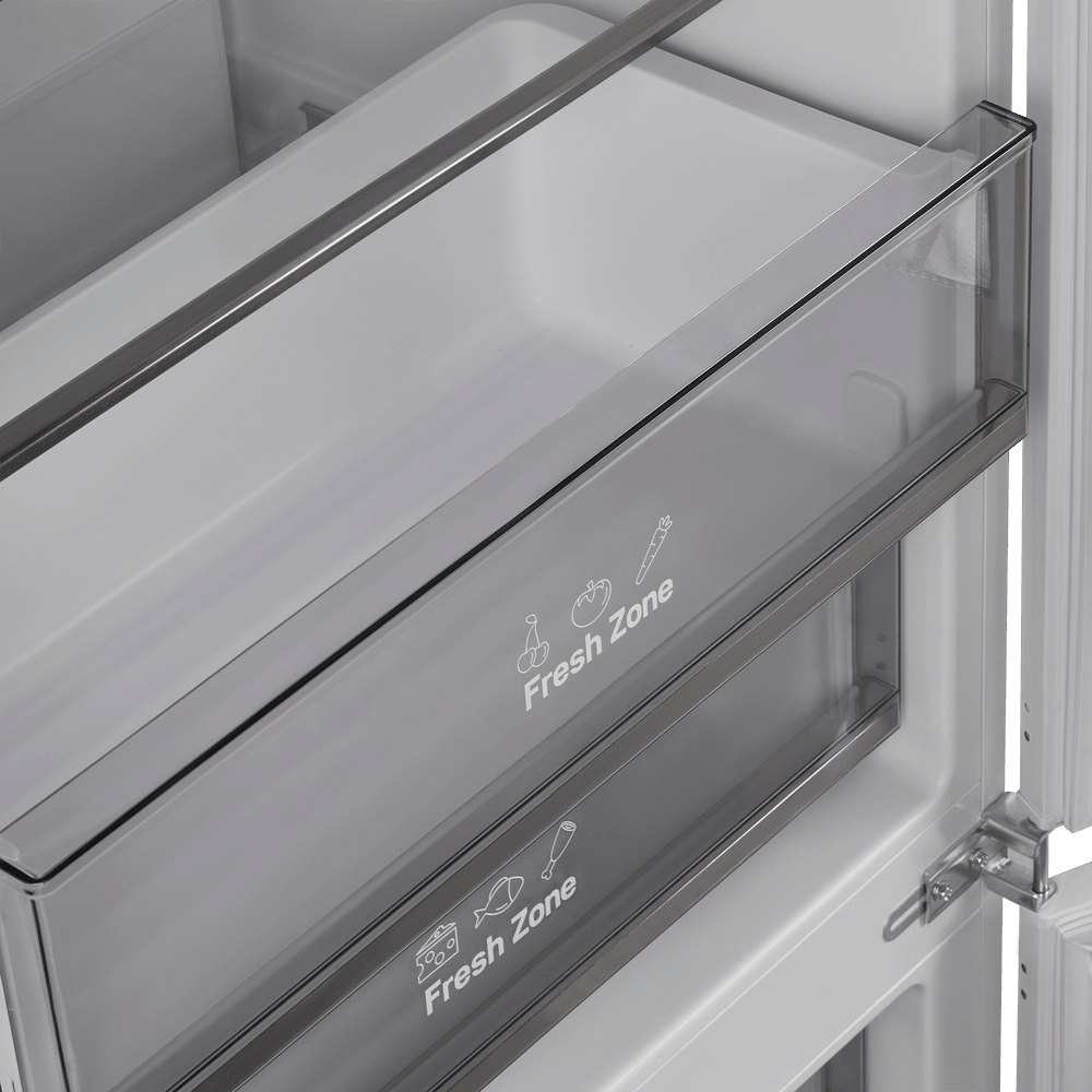 Специальная зона свежести предназначена для правильного и более длительного хранения овощей, фруктов, зелени. В ней поддерживается околонулевая температура, поэтому продукты не перемораживаются и не пересыхают.