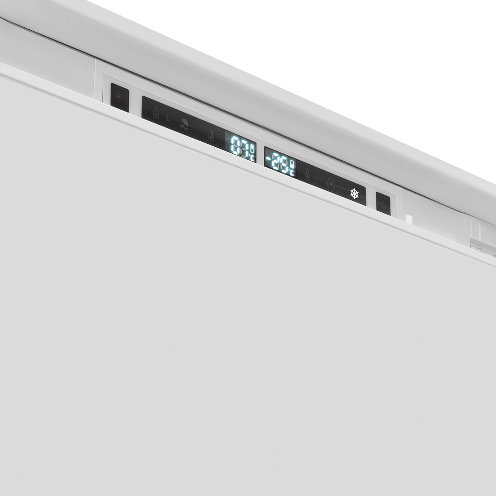 Встраиваемый прибор проще разместить в комнате, даже если общий метраж не такой уж большой. Вы можете спрятать его за декоративной панелью от мебельного фасада — советуем заранее определить нишу и заказывать панели исходя из типа крепления к двери. Способ монтажа в данной модели: жесткое крепление (система door on door) Благодаря внушительным размерам, в частности высоте, она подходит большим пространствам — просторной кухне, еврогостиной. Вы можете поменять направление открывания двери, так как упор переставляемый и ее можно перевесить на другую сторону. Такая функция открывает больше возможностей для установки. Холодильник с морозильником обладает всеми опциями, которые чаще всего ищут и выбирают покупатели. Стандартная конфигурация — универсальный вариант для любой квартиры. Количество камер: 2.