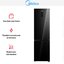 Холодильник Midea MDRB521MGE22ODM выполнен в формате отдельно стоящей двухдверной модели с нижней морозильной камерой, высота корпуса — 201 см, а габариты 201×59.5×66 см. Черное стекло на фасаде придает устройству строгий и современный вид, который легко впишется в интерьер кухни. Общий полезный объем достигает 360 литров, из которых 256 литров отведено под холодильную камеру и 104 литра — под морозильник. Практичная конфигурация дверей и возможность перевешивания петель дают свободу при установке в разных планировках.