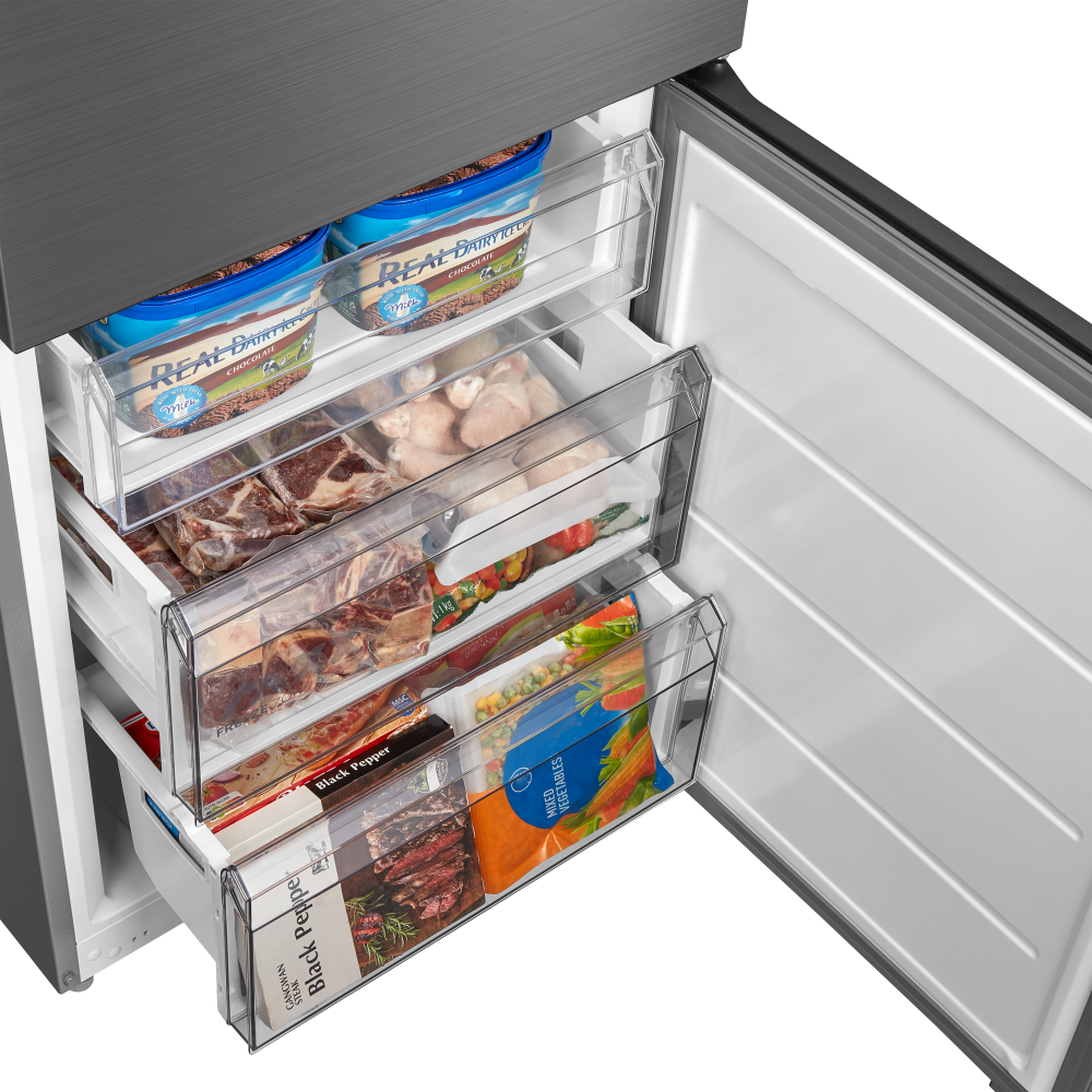 Трехкамерные модели выпускаются в нескольких вариантах. В некоторых случаях в качестве третьей камеры поступает так называемая зона свежести — отделение, где поддерживается температура около 0 градусов. В другом варианте подобные модели имеют морозильную камеру, состоящую из двух выдвижных ящиков.