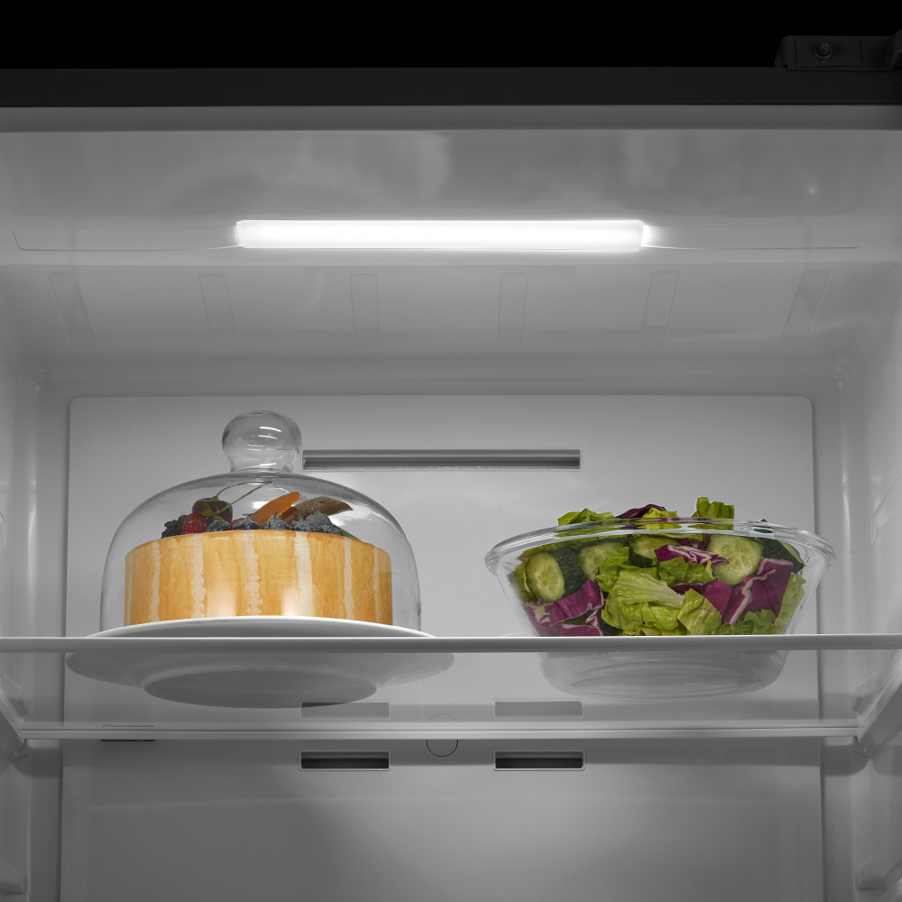 Внутреннее освещение холодильной камеры позволяет обеспечить хороший обзор содержимого и быстро найти необходимые продукты. Чем меньше времени будет открыта дверца холодильника, тем лучше будет поддерживаться в камере выбранная температура, следовательно, улучшится и качество хранения продуктов.