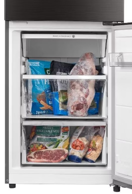 Специальная зона свежести предназначена для правильного и более длительного хранения овощей, фруктов, зелени. В ней поддерживается околонулевая температура, поэтому продукты не перемораживаются и не пересыхают.