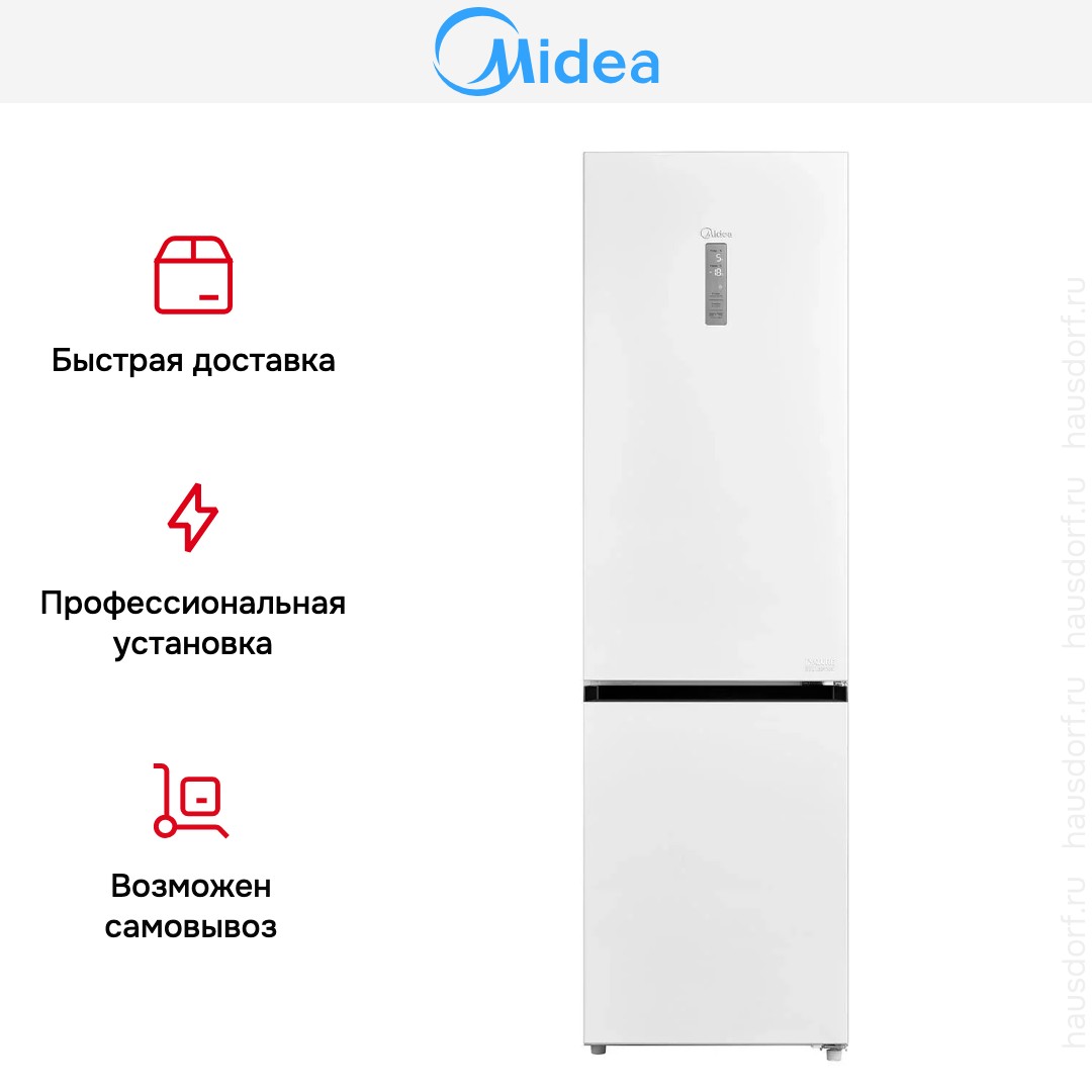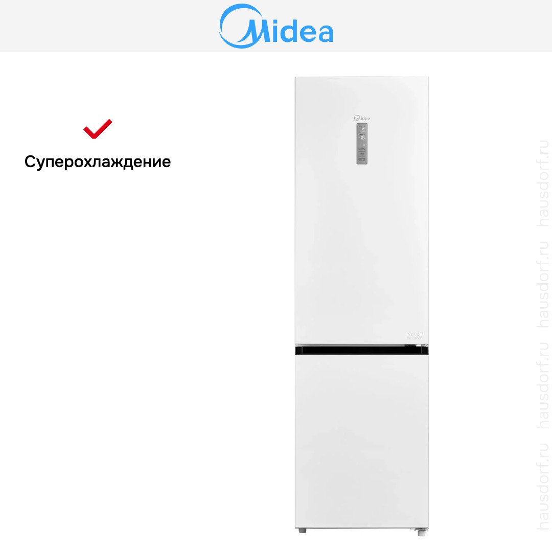 Холодильник Midea MDRB522MGE01OD представляет собой отдельностоящую двухкамерную модель с нижним расположением морозильной камеры и строгим белым оформлением. Его габариты 201×59.5×66 см делают прибор достаточно высоким, но при этом удобным для размещения в стандартной кухне. Две двери и правый дверной упор обеспечивают традиционную эргономику открытия, а лаконичный цвет и аккуратные линии корпуса легко впишутся в любой интерьер. Общий объём 402 л и полезный объём 386 л дают достаточно пространства для семьи, при этом полезный объём холодильного отделения 263 л и морозильного — 123 л создают удобное разделение хранения.