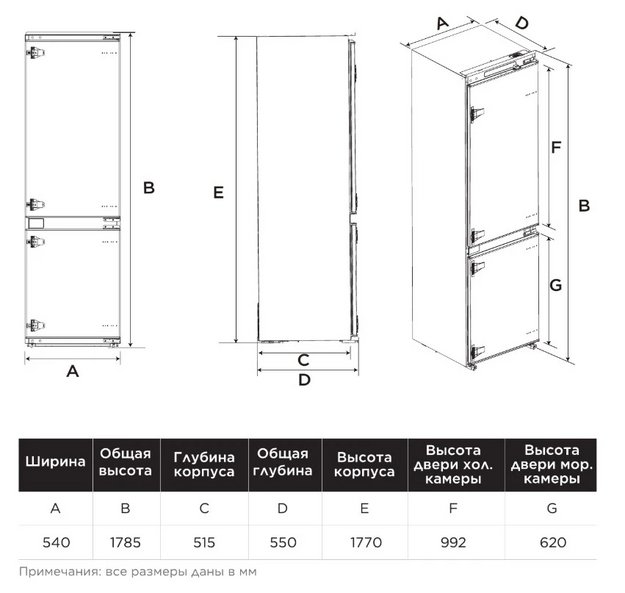 Высота холодильника — один из главных факторов, влияющих на выбор модели. Очевидно, что холодильник большей высоты будет более вместительным. Однако при выборе устройства необходимо учитывать целый ряд факторов, прежде всего высоту потолков, пищевые привычки, состав семьи, рост людей, которые будут холодильником пользоваться. Как правило, встраиваемые устройства представлены в несколько меньшем ассортименте, в том числе и по высоте.
