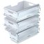 Ящики для продуктов изготавливаются либо целиком из прозрачного пластика, либо часто имеют переднюю прозрачную панель, которая обеспечивает лучший обзор. Полки в большинстве холодильников могут перемещаться по высоте, устанавливаются на специальных направляющих и без труда снимаются для очистки.