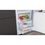 Полноразмерная модель высотой 177 см относится к климатическому классу SN-T: ее можно использовать при наружных температурах от + 10 до + 43 градусов и устанавливать в нежилых помещениях — например, кладовых или подвалах. Общий объем холодильника достигает 284 литров, из них 83 литра приходится на зону свежести. Прибор размещается в нише и может закрываться декоративным мебельным фасадом, который жестко крепится на дверцу. Правое крепление дверцы можно при желании заменить на левое. Еще одно преимущество этой дверцы — доводчик, который способствует мягкому и плавному закрыванию без хлопков. В верхней части находится электронная сенсорная панель управления с ЖК-дисплеем.