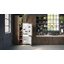 Прибор в этом случае помещается в колонну, шкаф или нишу, а на корпус этого шкафа или колонны крепится отдельная дверца на собственных петлях. Затем это дверца и дверь холодильника соединяются между собой при помощи специальных скользящих полозьев, или слайдеров. При открывания наружной дверцы внутренняя скользит вдоль нее на этих направляющих, так что происходит смещение их друг относительно друга. Дверца при этом открывается на угол не более 90 градусов.
