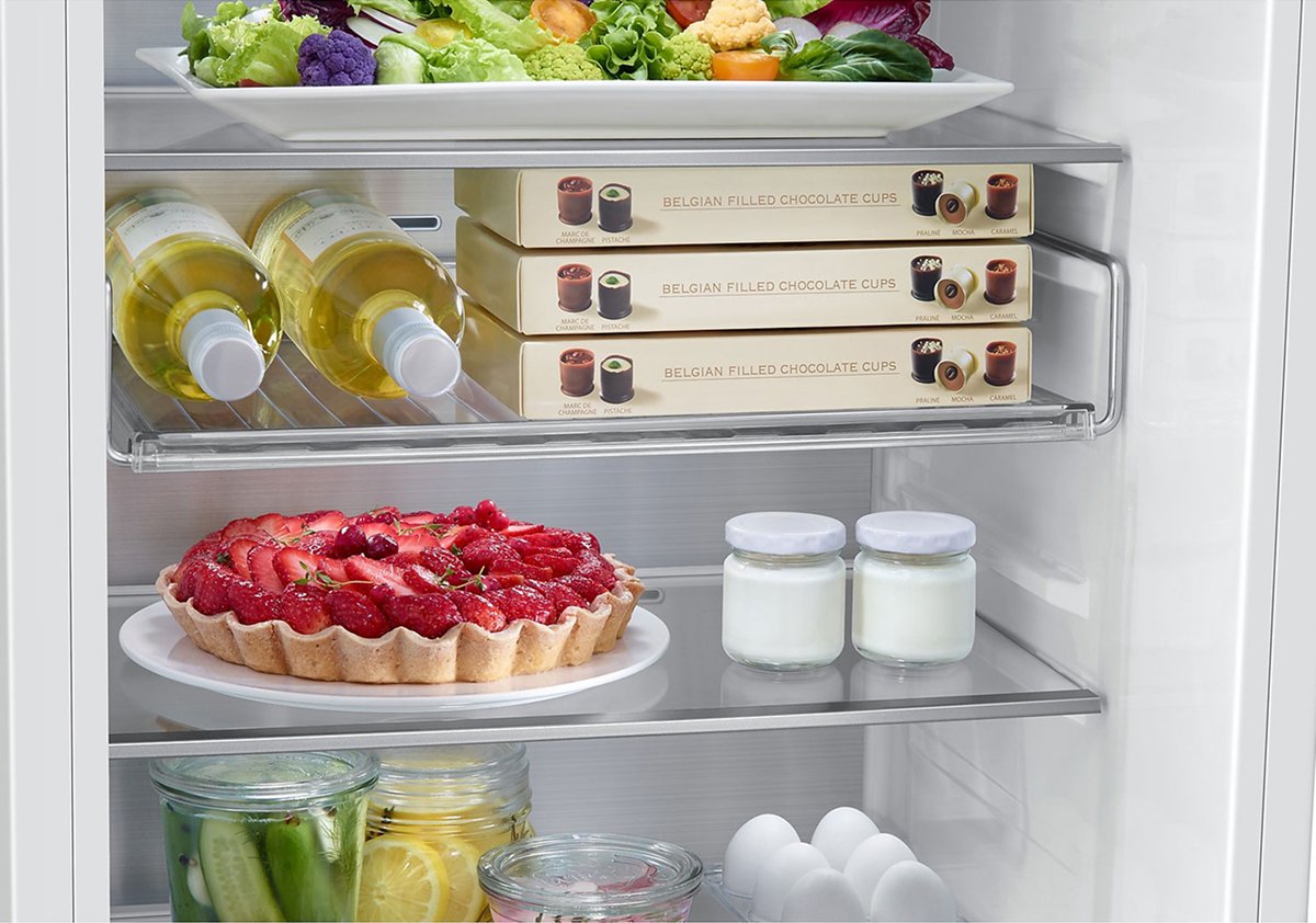 Полки в холодильнике позволяют рационально организовать хранение продуктов, обеспечить легкий поиск и доступ к ним. Основные материалы для изготовления полок — это пластик, стекло и металл. Часть полок можно переставлять по высоте или складывать вдвое или втрое.