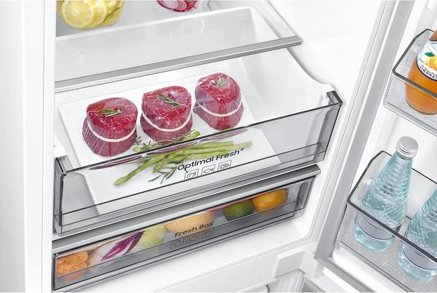 Специальная зона свежести предназначена для правильного и более длительного хранения овощей, фруктов, зелени. В ней поддерживается околонулевая температура, поэтому продукты не перемораживаются и не пересыхают.
