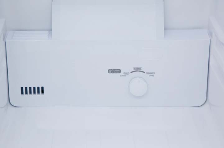 Основным элементом управления в холодильниках с механической или электромеханической системой служит поворотной переключатель с делениями. Поворотом ручки можно регулировать степень охлаждения на нескольких уровнях — от минимального до максимального. Точное значение температуры в таких устройствах установить невозможно. Кроме того, во всех холодильниках присутствует система индикации, которая действует при повышении температуры в камере выше заданного значения, а также лампочка, которая загорается при неплотно закрытой дверце.