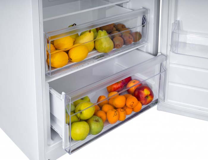 Ящики для овощей и фруктов можно найти в любой холодильной камере, какого размера ни был бы ваш холодильник — от большого устройства Side-by-Side до стандартной двухкамерной модели. В простейшем варианте они представляют собой обычные выдвижные ящики из пластика в нижней части камеры.