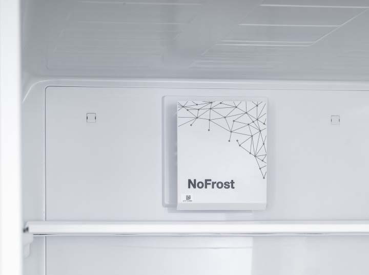 No Frost (Total No Frost, Frost Free): вентилятор обеспечивает циркуляцию охлажденного воздуха, благодаря чему лед не нарастает на стенке, а концентрируется только на скрытом внутри холодильника испарителе. Талая вода собирается в специальной емкости и испаряется. Такой холодильник не нужно размораживать – это экономит время и позволяет не останавливать прибор. Благодаря этим плюсам в современных моделях No Frost – самая распространенная система.