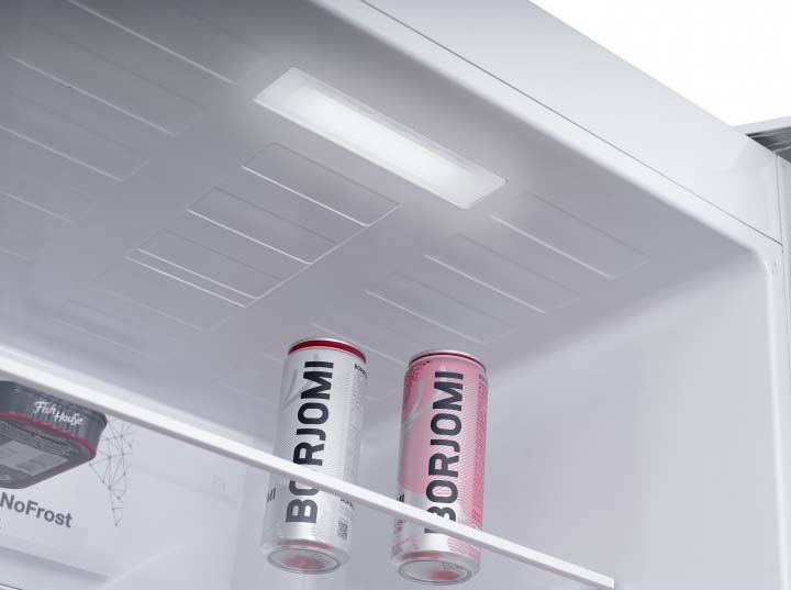 Внутреннее освещение холодильной камеры позволяет обеспечить хороший обзор содержимого и быстро найти необходимые продукты. Чем меньше времени будет открыта дверца холодильника, тем лучше будет поддерживаться в камере выбранная температура, следовательно, улучшится и качество хранения продуктов.