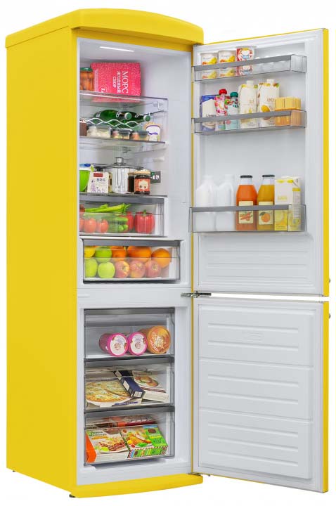 Цветные холодильники придают кухне особый шарм. Яркий прибор станет заметной деталью и центром кухни в ретро-стиле (особенно стоит обратить внимание на цветные холодильники производства «Смег»), а также индустриальном или лофт. Необычные пастельные оттенки отлично смотрятся в интерьерах в деревенском или средиземноморском стиле.