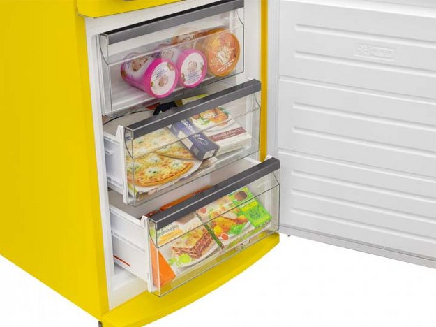 Трехкамерные модели выпускаются в нескольких вариантах. В некоторых случаях в качестве третьей камеры поступает так называемая зона свежести — отделение, где поддерживается температура около 0 градусов. В другом варианте подобные модели имеют морозильную камеру, состоящую из двух выдвижных ящиков.