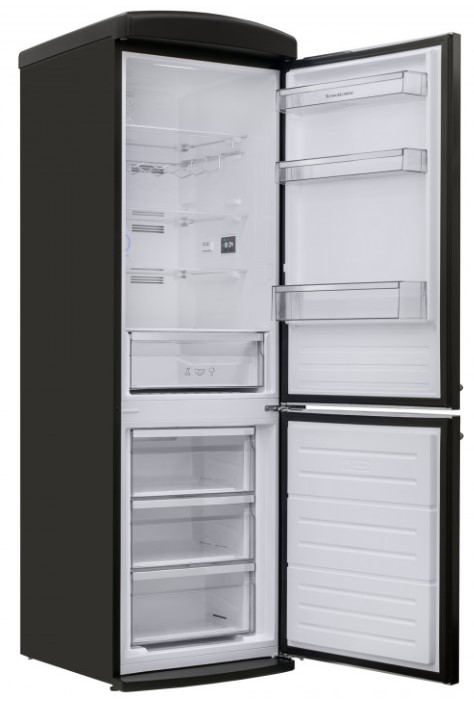 Последнее время достаточно широкое распространение получили холодильники черного цвета. Подобные устройства придают кухне особый стиль, однако не рекомендуется устанавливать их в небольшом помещении, особенно если фасад изготовлен не из стекла. Кроме того, черные холодильники требуют постоянного тщательного ухода, так как на них лучше заметны загрязнения.
